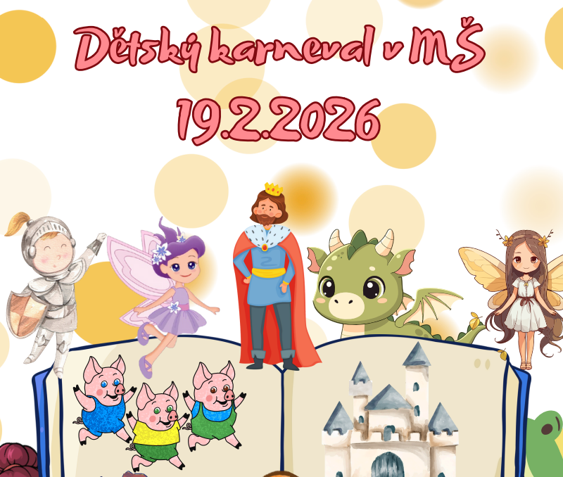 srdečně zveme všechny děti na náš velký školkový KARNEVAL, který se uskuteční ve čtvrtek 19. 2. 2026.